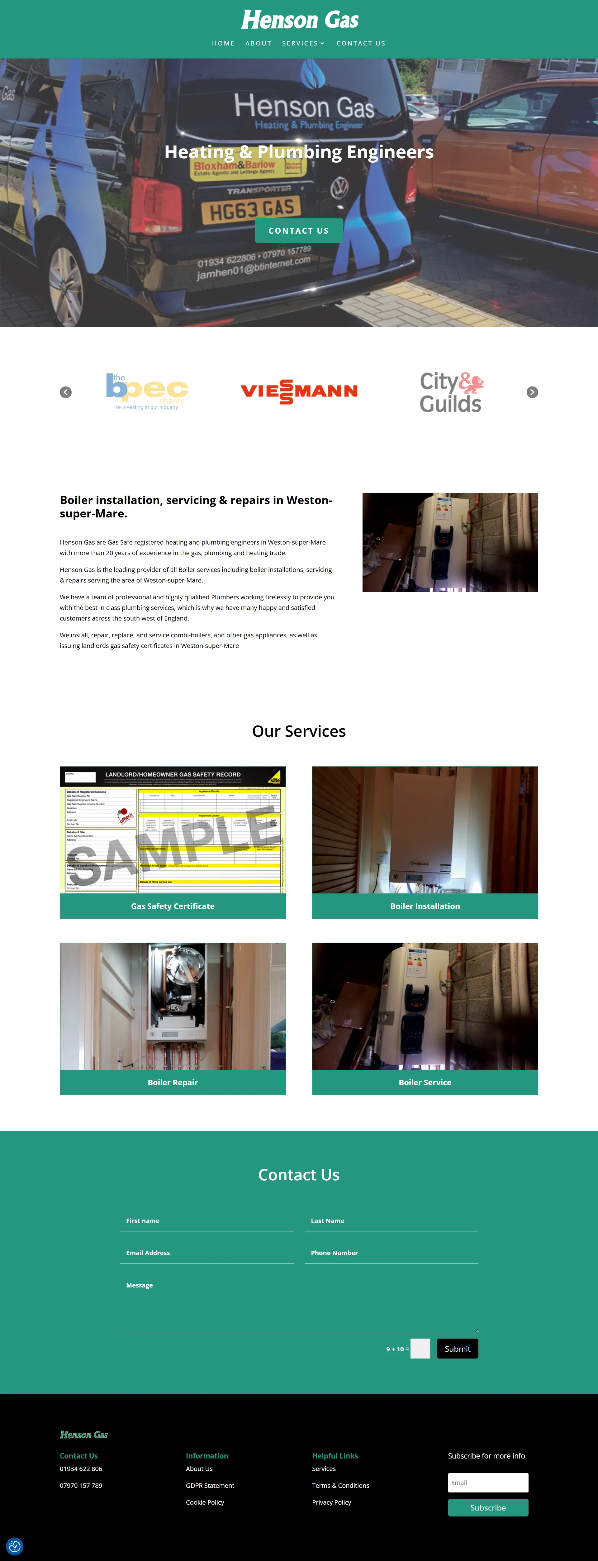 To design and develop a website for gas services in Weston-super-Mare, to boost the marketing done in the offline world, matching the existing brand of Henson Gas.